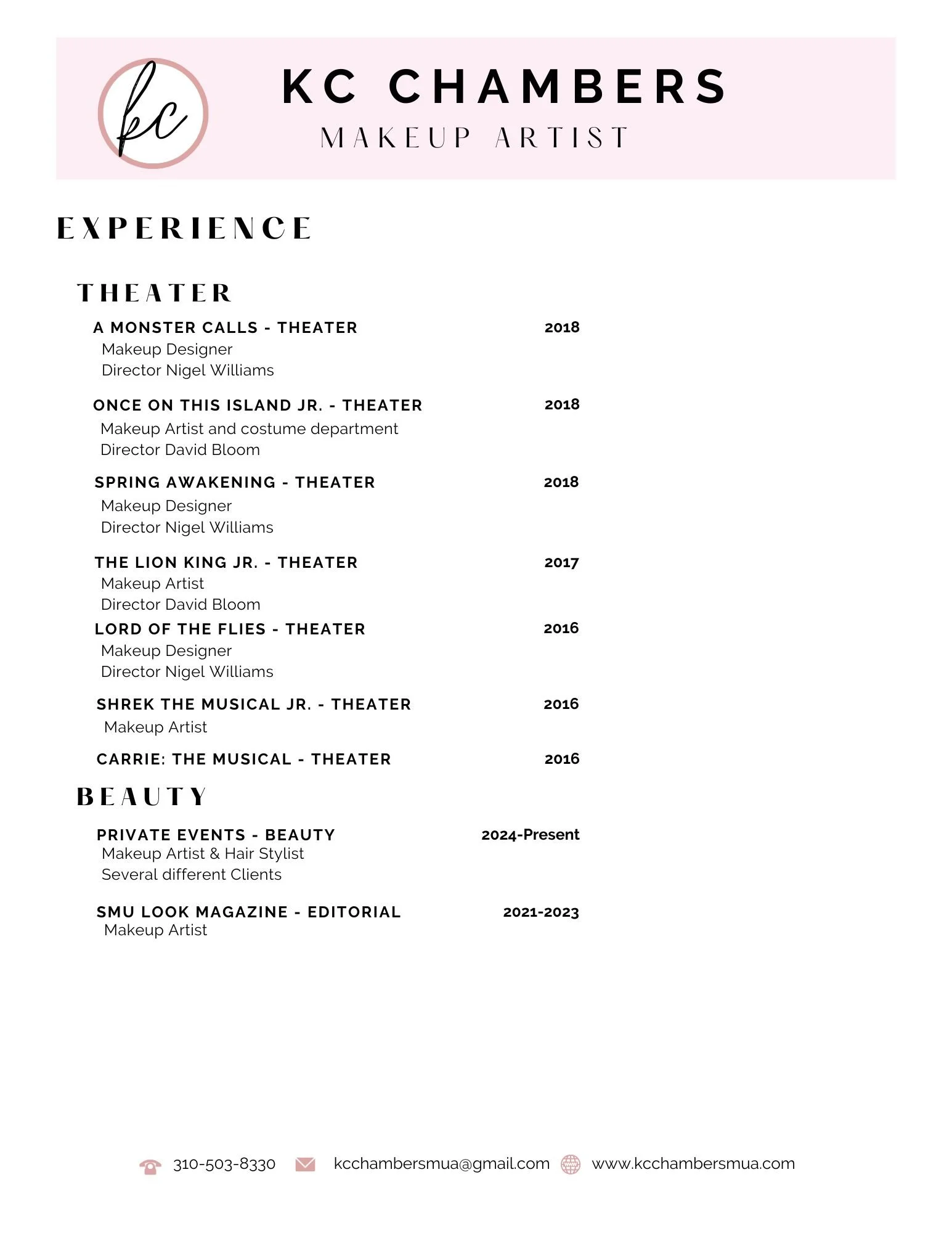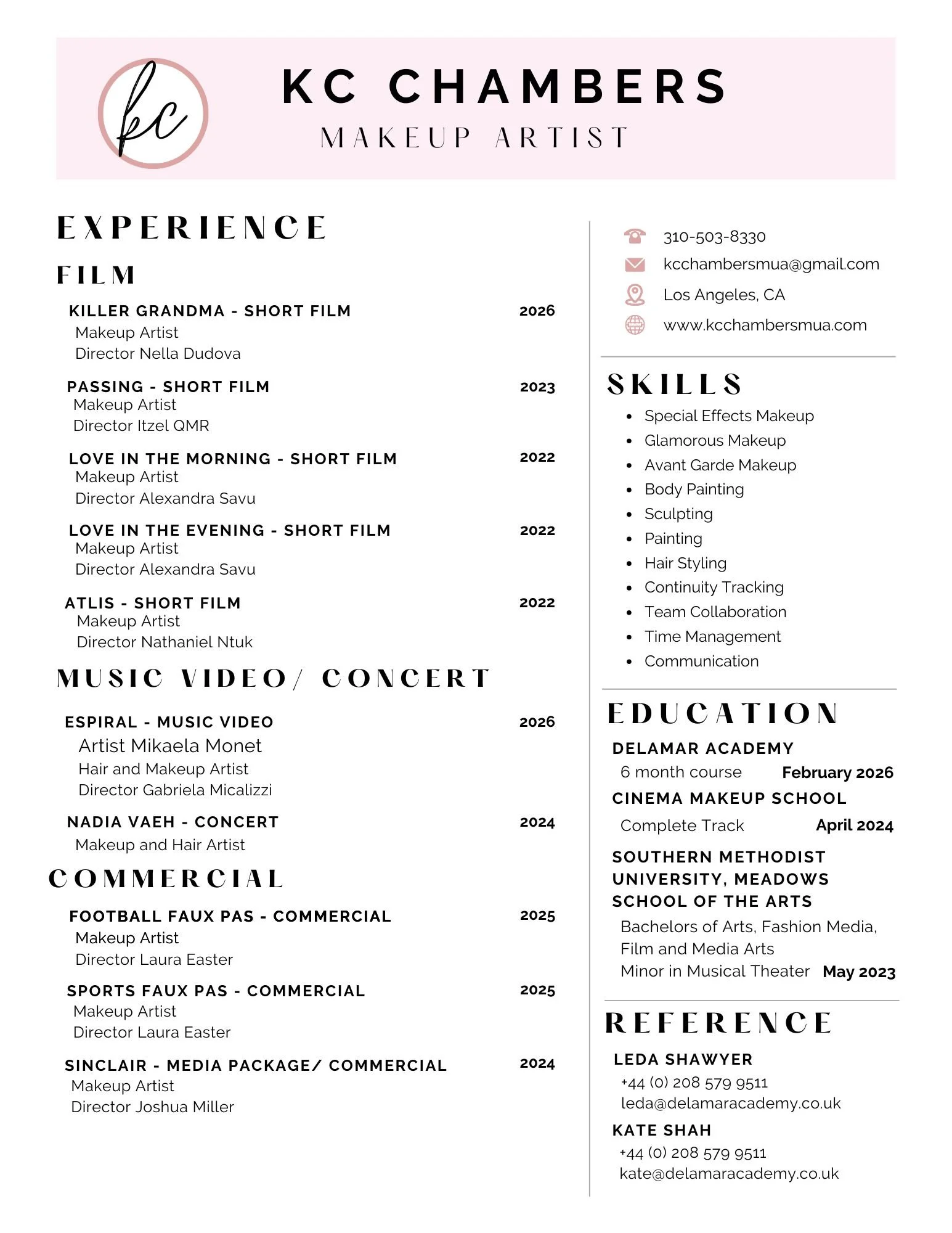 I’m a professional makeup artist primarily focusing on the TV and Film industry. I am trained in both beauty and special effects work. I graduated from Southern Methodist University with a degree in Fashion Media and Film and Media Arts. After college, I graduated from Cinema Makeup School in Los Angeles as well as Delamar Academy in London to pursue my lifelong dream of working in the entertainment industry.